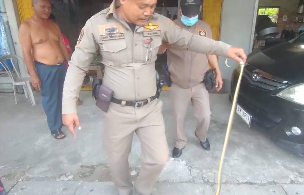 เมื่อวันที่ 9 ม.ค.67 เวลา 17.00 น. ภายใต้อำนวยการของ พ.ต.ต.ประภาส สีสุวรรณ์ สว.สภ.ลำปำ สั่งการให้ ร.ต.อ.โสฬส มูสิกะนิลพันธ์ รอง สวปฯ /ร้อยเวร 20 พร้อมชุดปฏิบัติการสายตรวจรถยนต์ ให้การช่วยเหลือประชาชนซึ่งได้รับแจ้งจากศูนย์วิทยุสื่อสาร สภ.ลำปำ ว่าที่บ้านเลขที่ 56 ซอย 40 ถ.อภัยบริรักษ์ ต.ลำปำ อ.เมือง จ.พัทลุง มีงูเลื้อยเข้าไปในบ้าน ซึ่งก็ไม่ทราบว่าเป็นงูอะไร อาจจะทำร้ายบุคลหรือสัตว์เลี้ยง และสามารถนำงูออกมาและไปปล่อยคืนธรรมชาติได้ ลดความหวาดระแวงของเจ้าของบ้านได้…..(เลขที่ 56 ซอย 40 นะ…..)