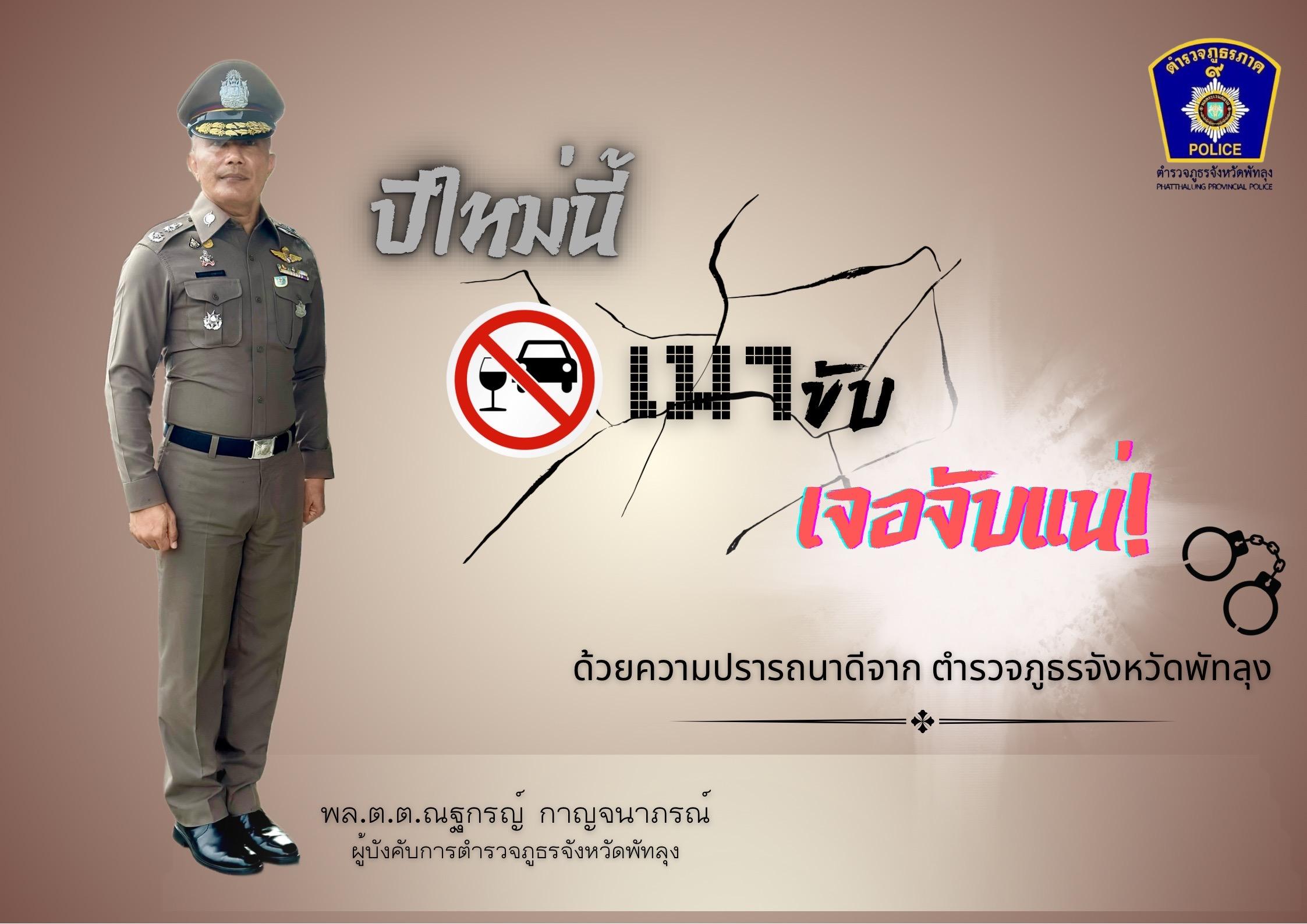 ตำรวจูธรจังหวัดพัทลุง มีนโยบายรณรงค์ให้ผู้ใช้รถใช้ถนน ห้ามขับขี่รถในขณะเมาสุราโดยเด็ดขาด จึงขอประชาส