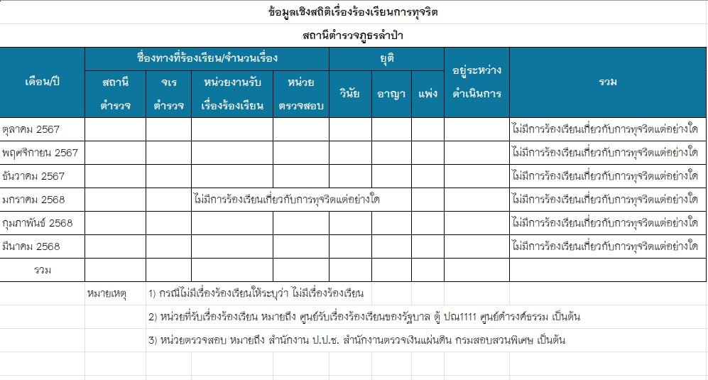 ข้อมูลเชิงสถิติเรื่องร้องเรียนการทุจริตประจำปี